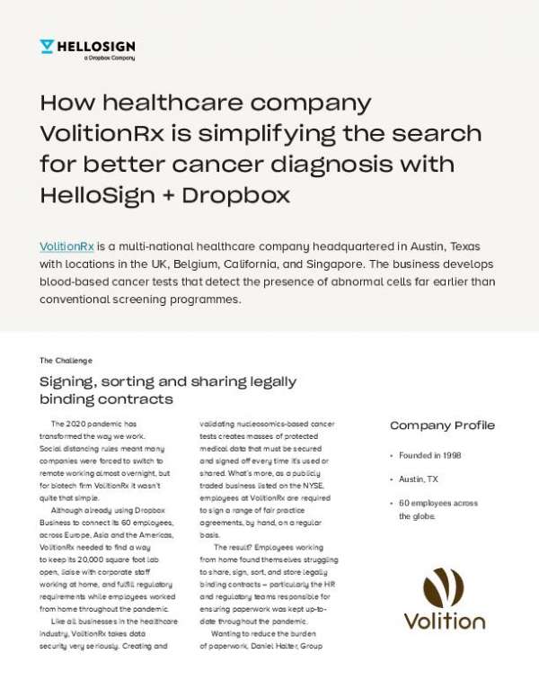 How Healthcare Company VolitionRx Is Simplifying the Search for Better Cancer Diagnosis with HelloSign + Dropbox